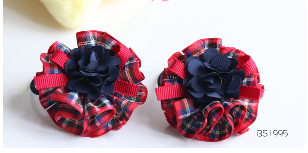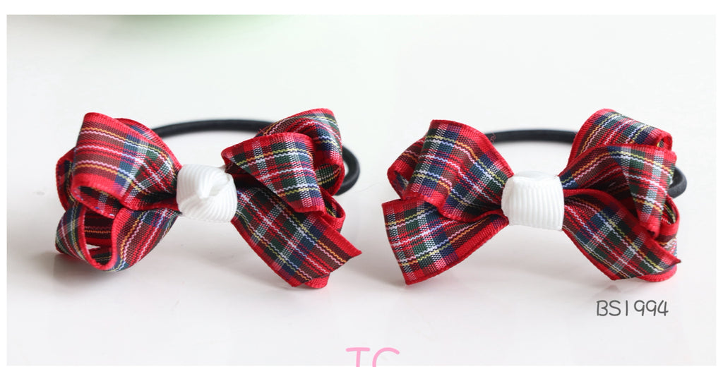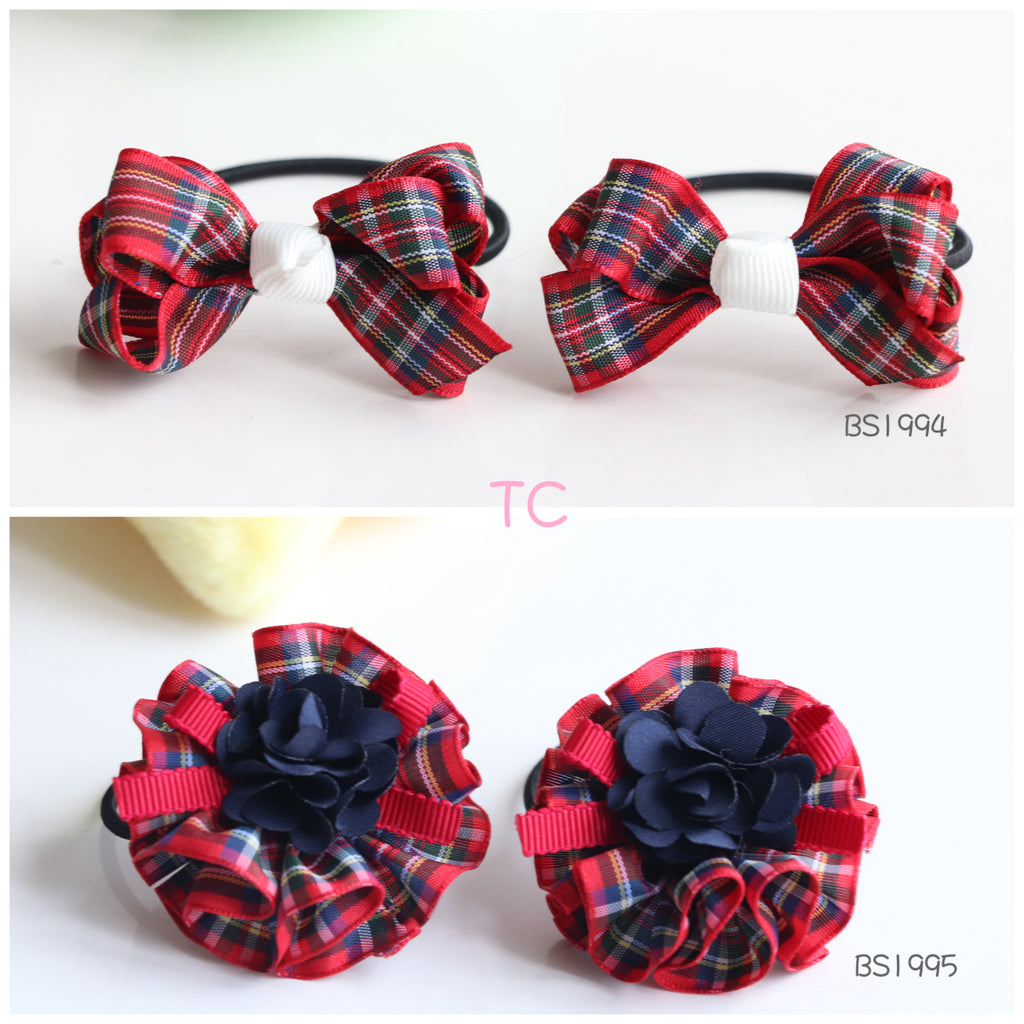 圣保禄学校发饰,圣保禄学校蝴蝶结,圣保禄学校橡筋圈,深蓝和格仔蝴蝶结, 玛利曼小学冬季头饰