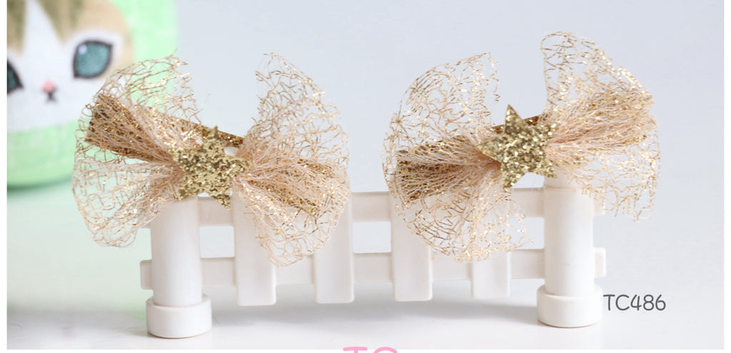 高贵网纱闪星星头夹(一对) (TC486-TC487)
