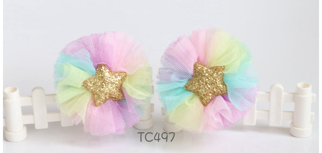 Elegant Tulle Hair Clip Set, Pink and Rainbow (TC496-TC497)