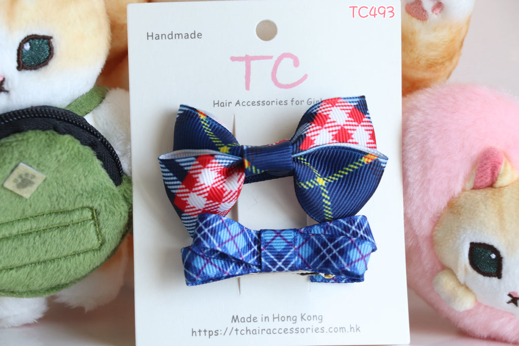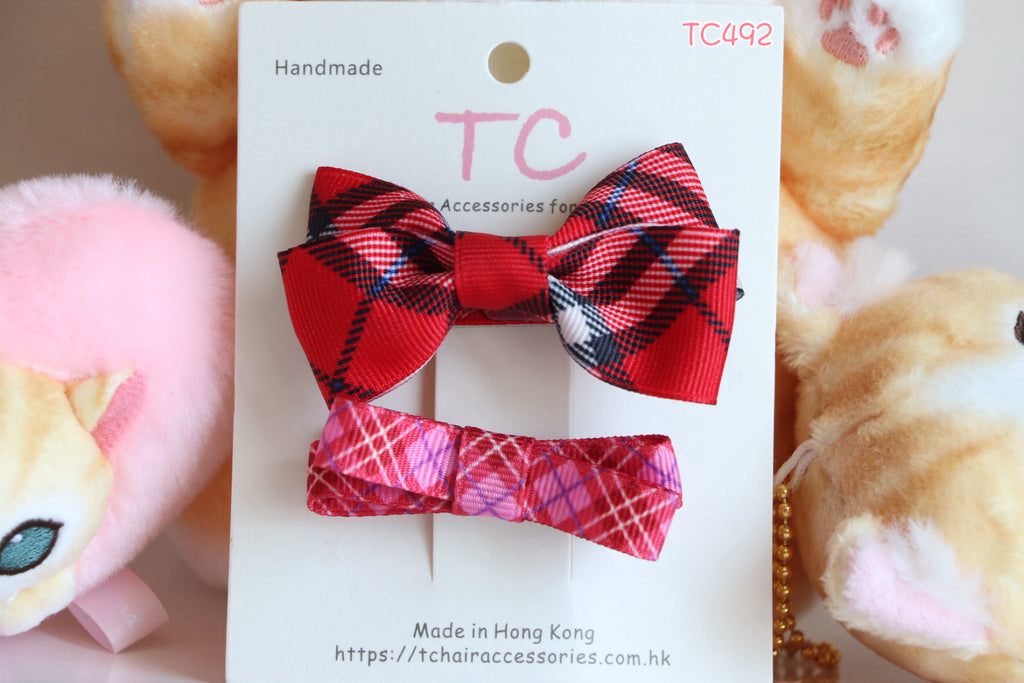 高贵格子头夹(一套两件,红色/蓝色)(TC492-TC493)